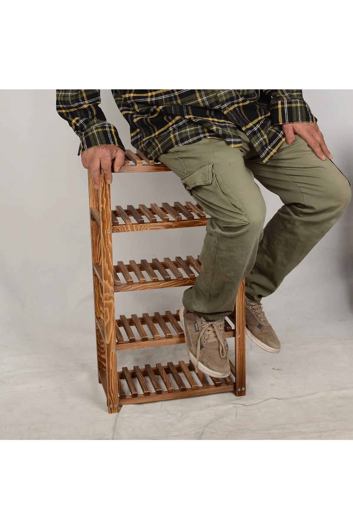 Wooden City 4 Katlı Masif Ahşap Ayakkabılık Ahşap Ayakkabı Rafı 60×60