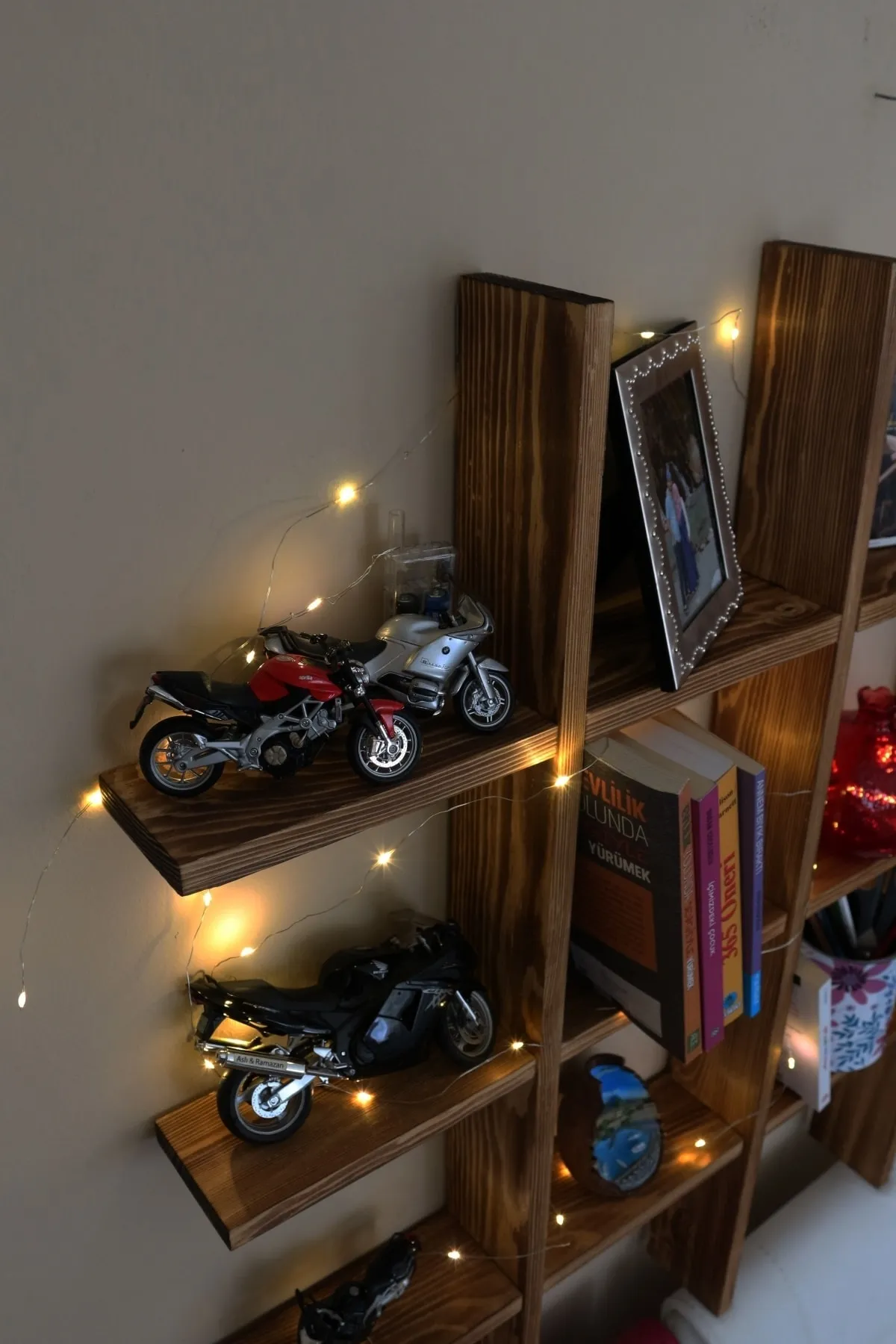 Wooden City Ahşap Raf Dekoratif Eskitme Işıklı Nostalji Kitaplık Süs Eşya Rafı